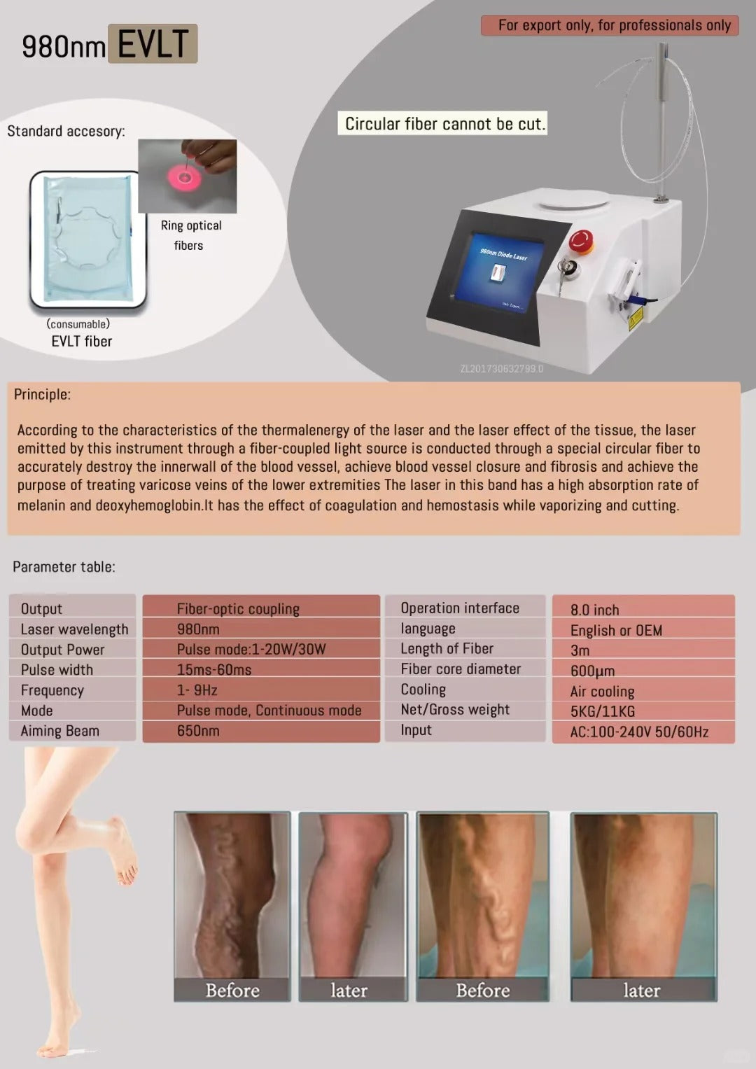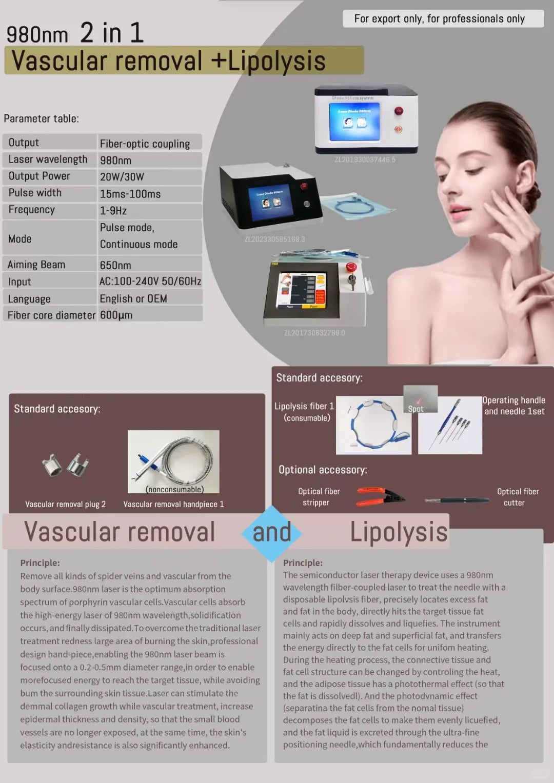 1470nm Endo Laser Face Lifting Liposucion Laser Fiber Endolaser Lipolysis Dual Wavelength 980nm 1470